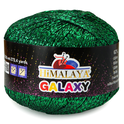 Новинка от Himalaya - Galaxy - это фантазийная пряжа с эффектной люрексовой нитью, состоящая из: 62% Глиттера, 38% Полиамида. Она прекрасно подойдёт для вязания вечерних нарядов и ярких аксессуаров. Благодаря мерцающему эффекту пряжа выглядит очень празднично и стильно, а особенно хорошо смотрится в легких шалях, ажурных кардиганах, струящихся платьях.