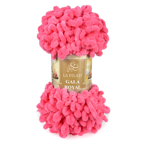 Эта фантазийная пряжа для ручного вязания невероятно мягкая, объемная и очень приятная на ощупь. Плюшевая ниточка изготовлена в виде готовых петелек. Вязать из нее легко и быстро без спиц и крючков. Готовые петли продеваются одна в другую в определённом порядке. В итоге получаются разнообразные узоры: плетёнка, колосок, зефирка, жемчуг, соты и ещё множество других узоров. Из La Filati GALA ROYAL создаются уютные пледы, очаровательные коврики-игрушки, мягкие подушечки и халаты, а также балаклавы, шапки, шарфы и другие теплые, лёгкие, неповторимые изделия.