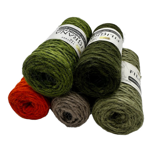 Набор из 5 мотков крашеной джутовой пряжи из натурального волокна.