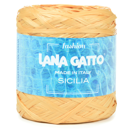 Lana Gatta SICILIA - это ленточная нить, которая прекрасно имитирует внешний вид рафии, но производится из 100% полиамида, поэтому является более прочной и податливой по сравнению с классической древесноцеллюлозной рафией. Таким образом, Сицилия - идеальный вариант для вязания пляжных сумок и шляп, незаменимых аксессуаров наступающего лета. Водостойкая и простая в работе нить поставляется в катушках по 50гр, длиной 335м. и шириной ленты около 2-3мм.