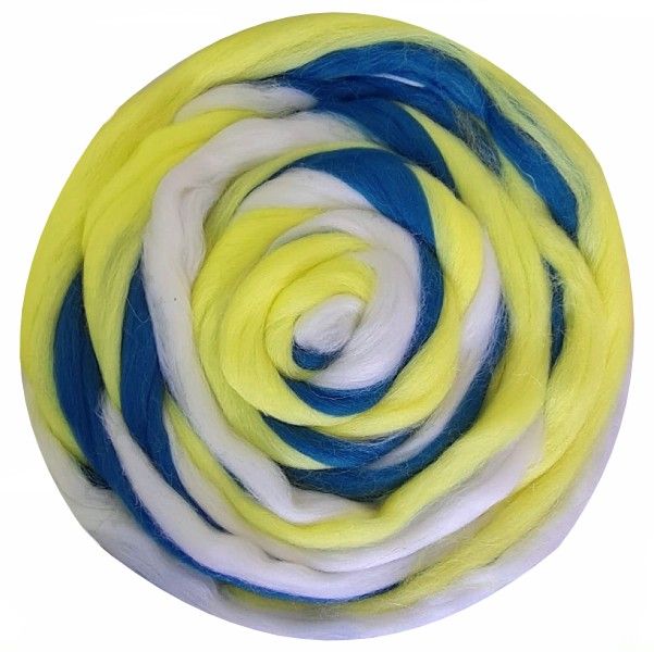COLOR—Полутонкая шерсть для валяния 1517 мультиколор (жёлтый/белый/т.синий)