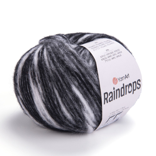 Новинка от турецкого бренда YarnArt – Raindrops. Пряжа очень теплая, мягкая, объемная и приятная на ощупь. Меланжевая, пушистая, смесовая пряжа с эффектом дождевых брызг позволит создать необычные и притягивающие взгляд изделия. Новая фантазийная пряжа Raindrops подойдет для вязания ярких и оригинальных изделий: тёплых шарфов, шапок, жилеток, снудов, кардиганов, детских вещей, уютных зимних свитеров и различных зимних аксессуаров. Пряжа эффектно смотрится в простой вязке, в глади и в текстурных узорах. Цветовая гамма разнообразна - от приглушённых оттенков до пёстрых. Рекомендуется ручная стирка при температуре 40°С.