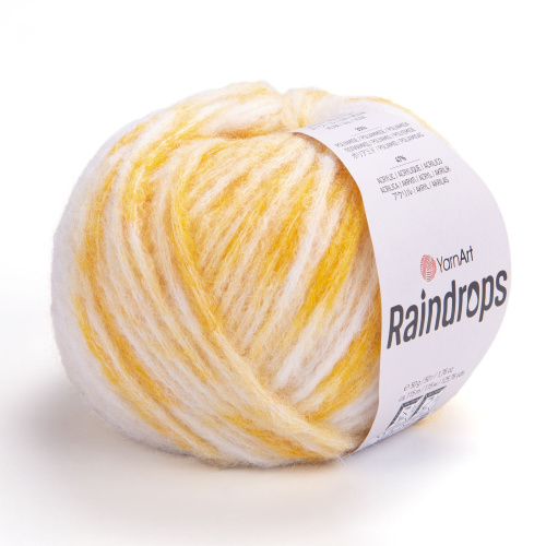 Новинка от турецкого бренда YarnArt – Raindrops. Пряжа очень теплая, мягкая, объемная и приятная на ощупь. Меланжевая, пушистая, смесовая пряжа с эффектом дождевых брызг позволит создать необычные и притягивающие взгляд изделия. Новая фантазийная пряжа Raindrops подойдет для вязания ярких и оригинальных изделий: тёплых шарфов, шапок, жилеток, снудов, кардиганов, детских вещей, уютных зимних свитеров и различных зимних аксессуаров. Пряжа эффектно смотрится в простой вязке, в глади и в текстурных узорах. Цветовая гамма разнообразна - от приглушённых оттенков до пёстрых. Рекомендуется ручная стирка при температуре 40°С.